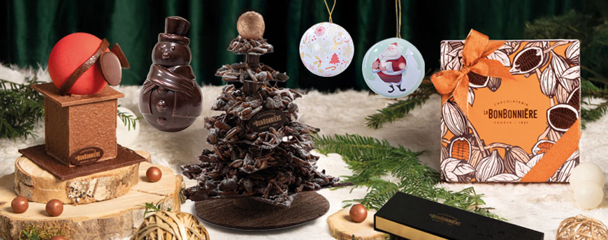 Calendrier de l’Avent, spécialités chocolatées, sapin rocher… découvrez notre collection pour fêter Noël avec douceur et gourmandise.
