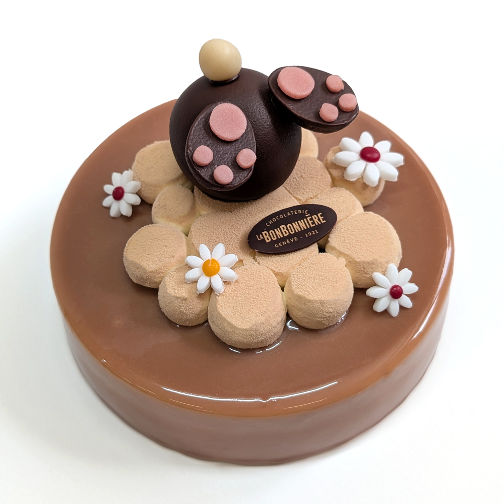 Composition : Butter, sugar, eggs, rice flour, salt, hazelnut, raspberry, pectin, bovine gelatin, cream.