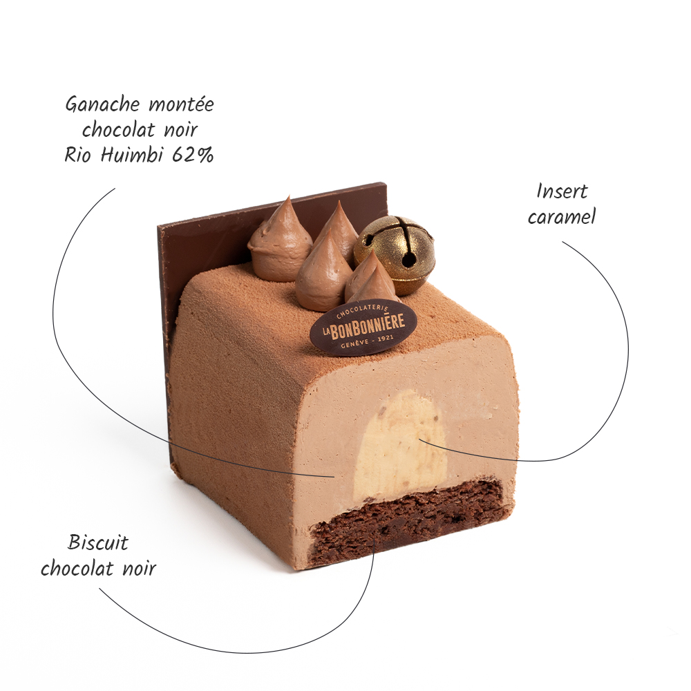 Avec la bûche Majestic, La Bonbonnière compose avec des notes chocolatées qui lui sont chères. Une ganache montée chocolat noir Rio Huimbi 62% accompagnée d’un biscuit chocolat agrémentée d’un insert caramel, pour une bûche végane aux saveurs enchanteresses, aussi savoureuse qu’une bûche traditionnelle, qui régalera petits et grands pour les fêtes.