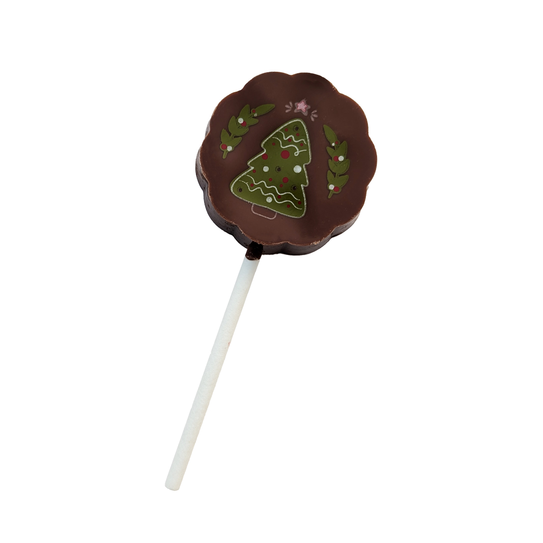 Très appréciée des amateurs de chocolat, cette sucette au chocolat à choisir au lait ou noir régale les amateurs de chocolat.